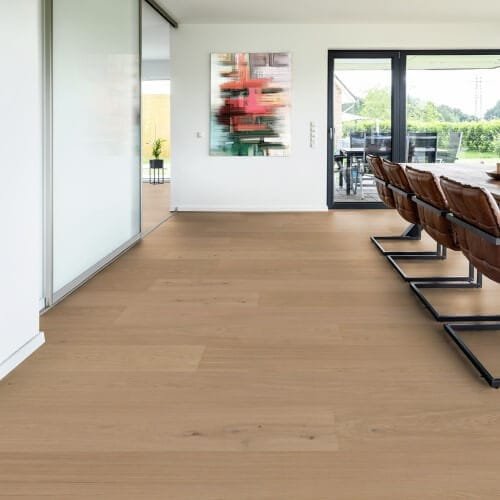 Los suelos híbridos destacan por su excelente resistencia a la humedad, golpes y arañazos, lo que los convierte en una opción ideal para áreas de alto tránsito y espacios que requieren un mantenimiento reducido. Son perfectos para cocinas, baños, salones, pasillos e incluso entornos comerciales, ya que soportan condiciones exigentes sin comprometer ni su estética ni su funcionalidad.